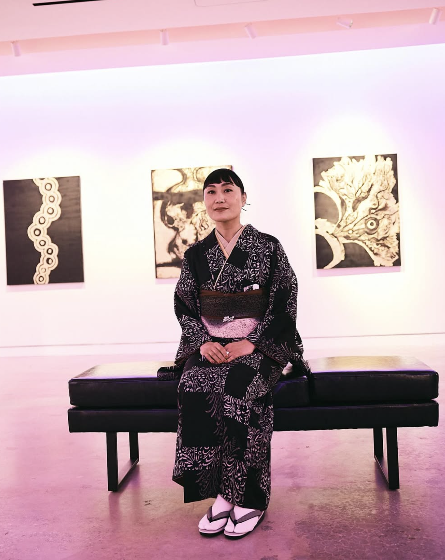 On February 7th, 2024, Kyoko Takeuchi was closing her two-week debut solo exhibition at Gallery Anderson Smith in Buckhead Village. On February 7th, 2026, Kyoko sits in the sunset light of the gallery’s new Midtown showroom, dressed in a traditional kimono and finally ready for “Emotional Stem” to open.